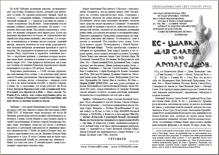 «СИЛА И ЗАЩИТА ОТ РЕПТИЛОИДОВ — СЛАВЯНСКАЯ МАТЕРЬ МИРА!» Автор: Виктория ПреобРАженская.